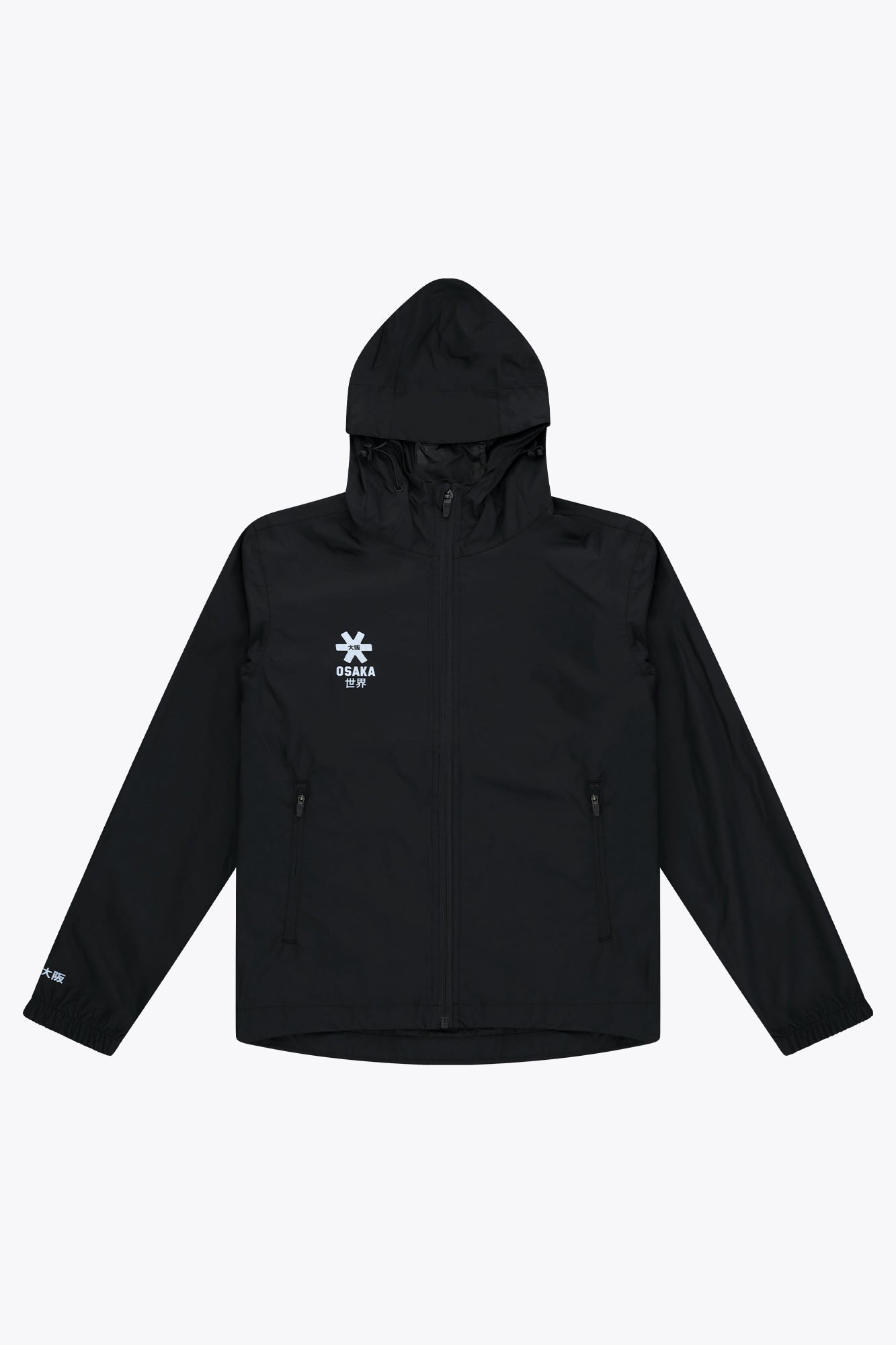 The jacket features an adjustable hood with velcro straps, elastic cuffs for a secure fit, and a clean silver Osaka logo screen print for a modern athletic look. Whether you’re on the field, the court, or commuting in wet weather, this performance rain jacket combines functionality and style in one essential layer.