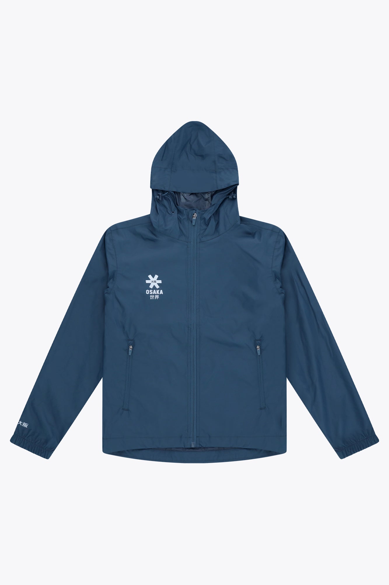 The jacket features an adjustable hood with velcro straps, elastic cuffs for a secure fit, and a clean silver Osaka logo screen print for a modern athletic look. Whether you’re on the field, the court, or commuting in wet weather, this performance rain jacket combines functionality and style in one essential layer.